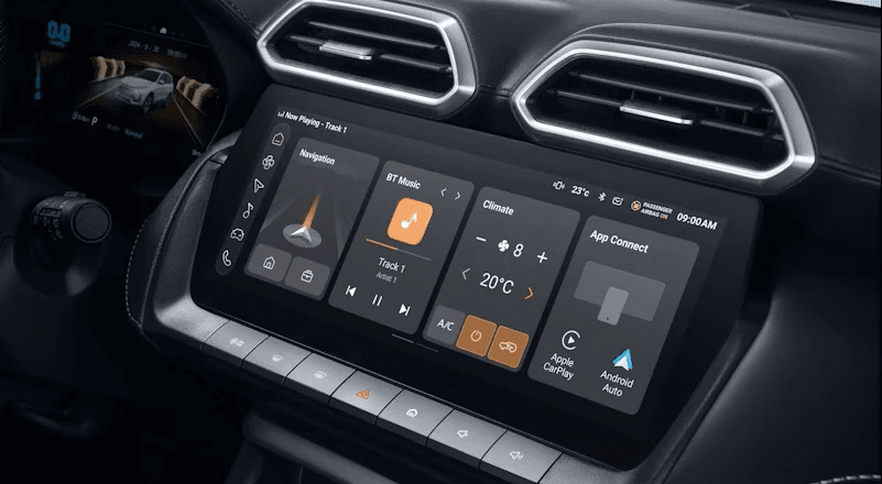 Czuj się komfortowo w nowym MG3 Hybrid+ dzięki inteligentnemu systemowi klimatyzacji. Temperatura we wnętrzu dostosowuje się automatycznie lub można ją regulować samodzielnie zgodnie z własnymi preferencjami. Równocześnie filtr PM2,5 blokuje zanieczyszczenia i zapachy z zewnątrz, dzięki czemu powietrze wewnątrz zawsze jest świeże i zdrowe.
